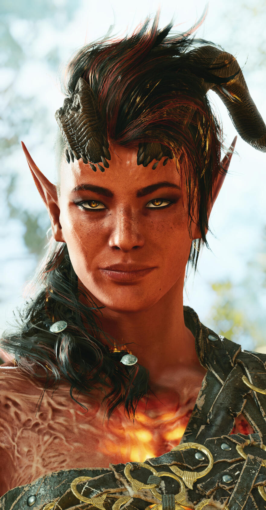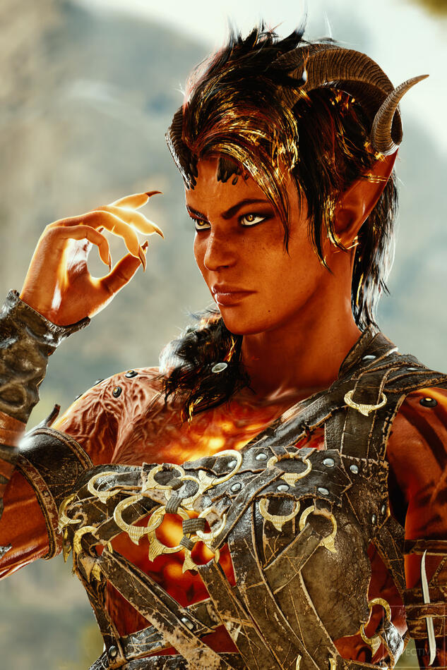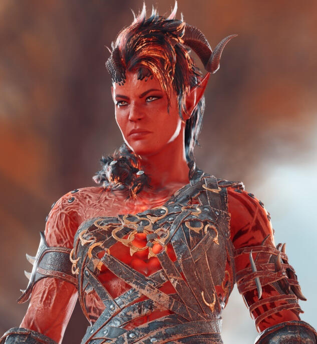 Trapped in Avernus under Zariel’s banner due to the machinations of those she trusted the most, Karlach has been fighting in the Blood War for a decade, away from all that she loved. Fate would smile on her and give her a way out, only to turn on her just as quickly, and she was tadpoled as she made her escape from Avernus. Now, free at last, though with an unwelcome guest in her head, she must protect her hard-won liberty with her life as she seeks revenge on those who crossed her many years ago.Karlach has a very strong sense of right and wrong. She enjoys helping innocent people with their troubles and not expecting anything in return. She approves of kind interactions with those in need, standing up for what’s right and being decisive with enemies. Setting her up for some fun, such as carousing or making some mayhem, also earns her approval, and being a compassionate friend to her, or a kind partner, is the easiest way of earning her trust and love. Karlach disapproves of indiscriminate violence, being insensitive to the plights of others and dismissive of her when she attempts to get closer. Dealing favourably with villains doesn’t sit well with her, and siding with Gortash, even if strategically sound, earns her disdain. Minimizing her problems, especially that of her malfunctioning mechanical heart, is a sure way of earning her contempt.